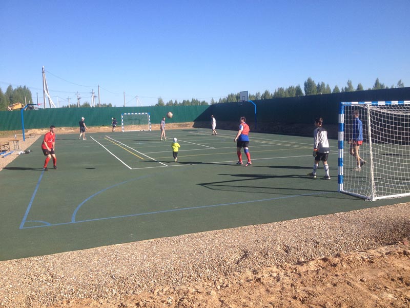 Рады сообщить Вам, что окончены работы по обустройству спортивной площадки на территории ДНП «Лесной ручей».