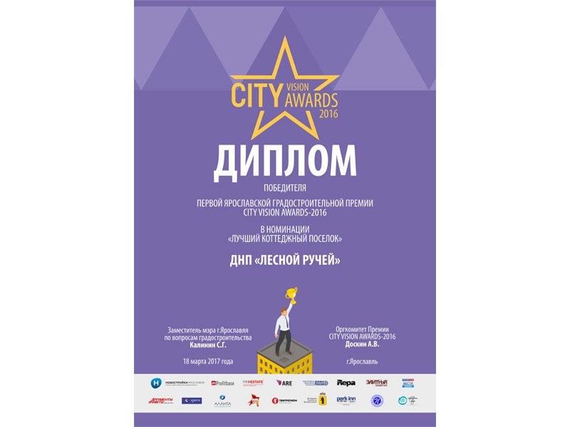 Мы стали победителями Первой Ярославской градостроительной Премии CITY VISION AWARDS-2016 в номинации Лучший коттеджный поселок!